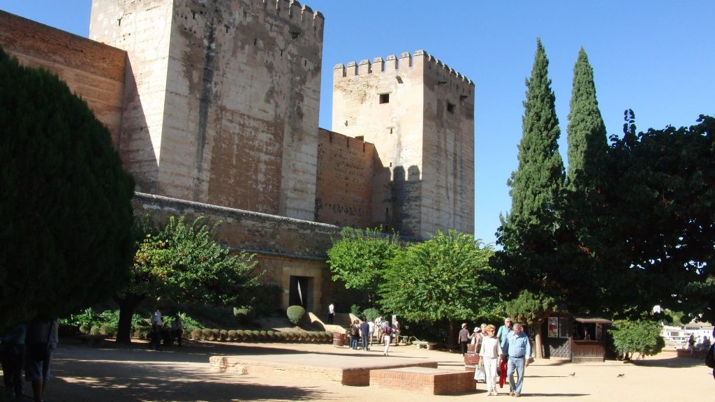 Для укрепления возвели три кольца оборонительных стен. Дозорные башни дополняли их мощь. Выше Алькасабы, куда ведет двойная стена, находится замок . Его строили в XIV веке. Это мощная крепость, огибающими контур холма и восемью башнями, где находились артиллерийские батареи.