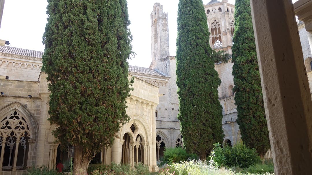Сантес-Креус — другой, более камерный и спокойный монастырь. Здесь меньше туристов, больше тишины и ощущения «живой истории»: массивные стены, строгая каменная архитектура и очень атмосферный клуатр, где хочется задержаться подольше.