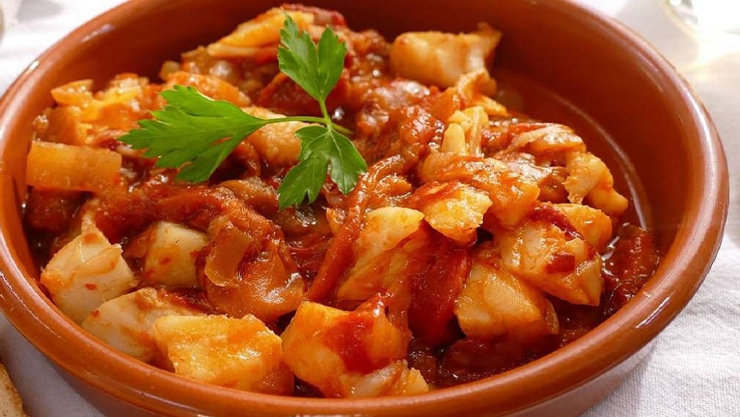 - Bacalao ajoarriero – треска с чесноком, перцем и помидорами. Моря в Арагоне нет, но солёная треска столетиями попадала сюда из северных портов.