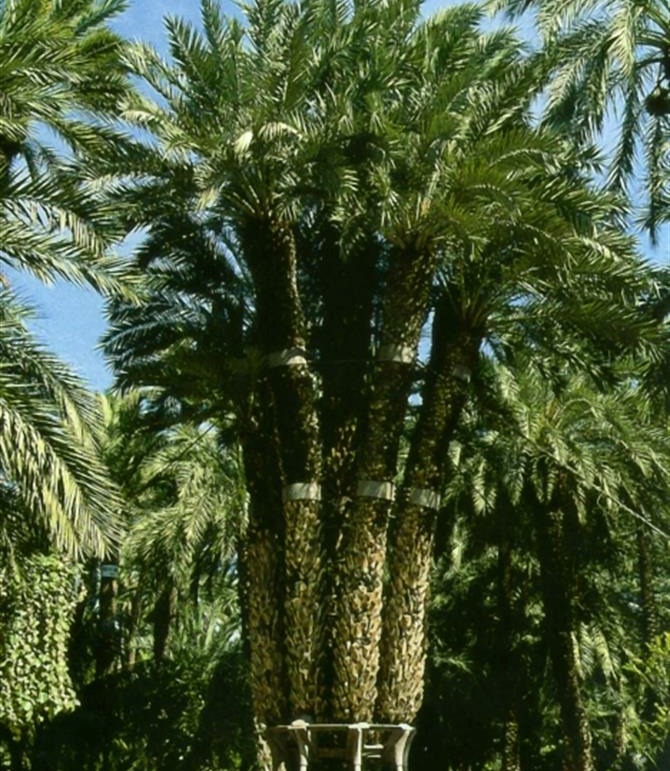 Пальмовая роща — это не просто посаженные растения. Это рукотворный оазис, ландшафт, созданный человеком, чтобы превратить засушливую землю в идеальное место для развития интенсивного земледелия. Урожай местности всегда зависел от вод реки Виналопо. Для этого на протяжении веков, со времен правления мавров, создавалась сложная гидравлическая система. Знаменитая сегодня Пальмовая роща оказалась в центре разветвленной сети каналов и водозаборников. Примерно 11 000 финиковых пальм создают рукотворный оазис среди пустынно-каменного пейзажа Аликанте. Самая известная из них носит название «Сиси», ее возраст 180 лет.